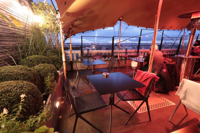 Chauffée elle se transforme en un jardin d’hiver perché, permettant de savourer breuvages élaborés et canapés moelleux, en jouissant d’une vue sur tout Paris.