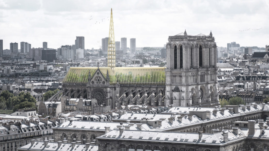 L’esquisse présente une étonnante serre urbaine au sommet de Paris et un toit doré, un véritable havre de paix. Mais au-delà de l’aspect esthétique, l’architecte souhaite susciter un débat citoyen. La nouvelle flèche deviendrait quant à elle une ruche pour abriter les abeilles de la cathédrale. Un projet audacieux qui souhaite allier le beau à l’utile.