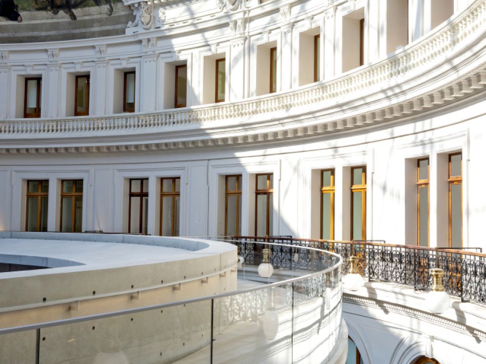 Confiée à l’architecte japonais Tadao Ando, le maître japonais a pleinement relevé le défi et allié audacieusement moderne et ancien. A l’intérieur de la Bourse de Commerce, il a instauré un dialogue entre le bâtiment préexistant et le nouveau en encastrant une structure de béton à la géométrie élémentaire.