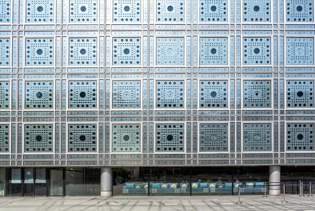 Façade de l’Institut du Monde Arabe, ornée de Moucharabiehs.