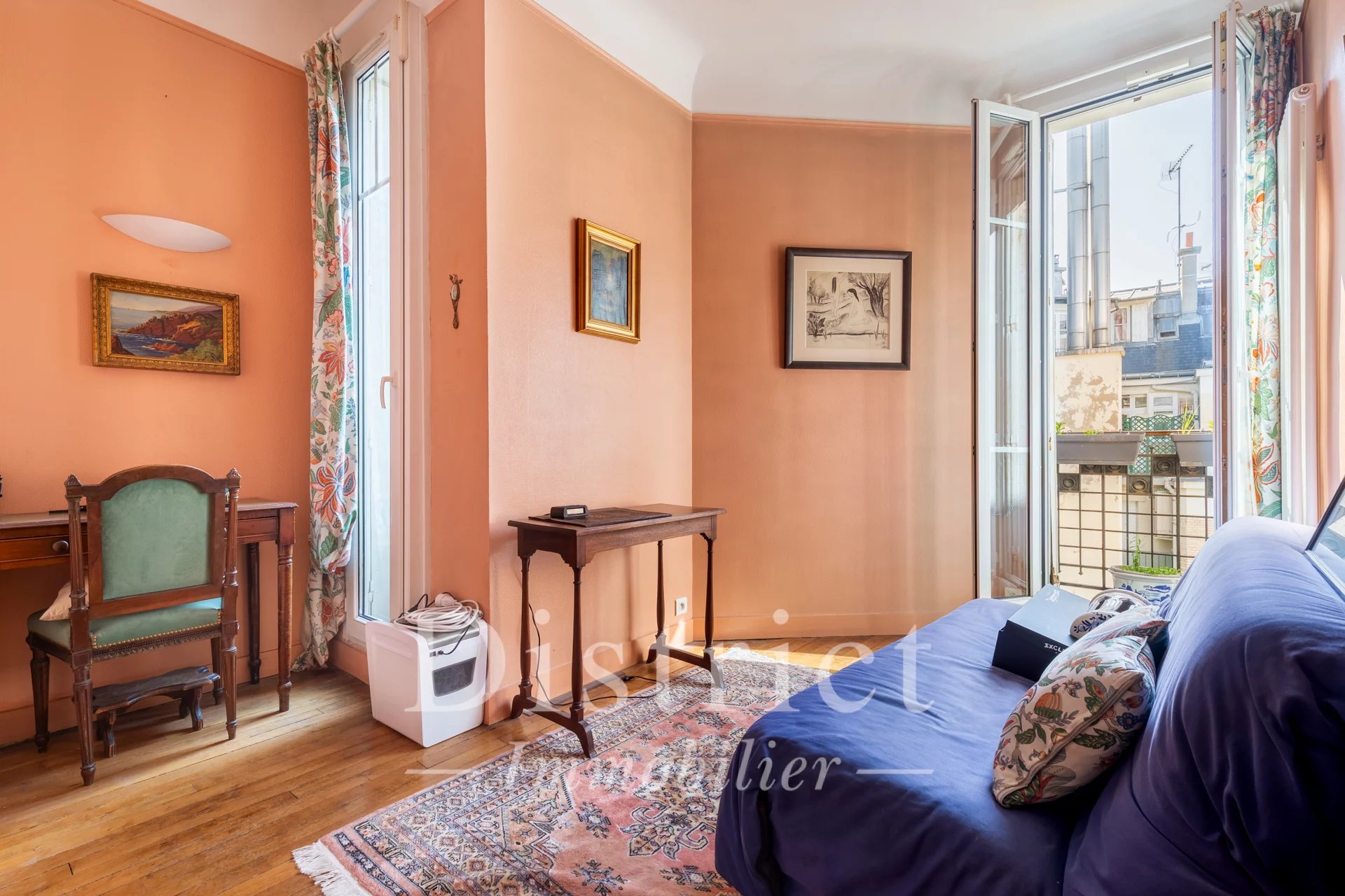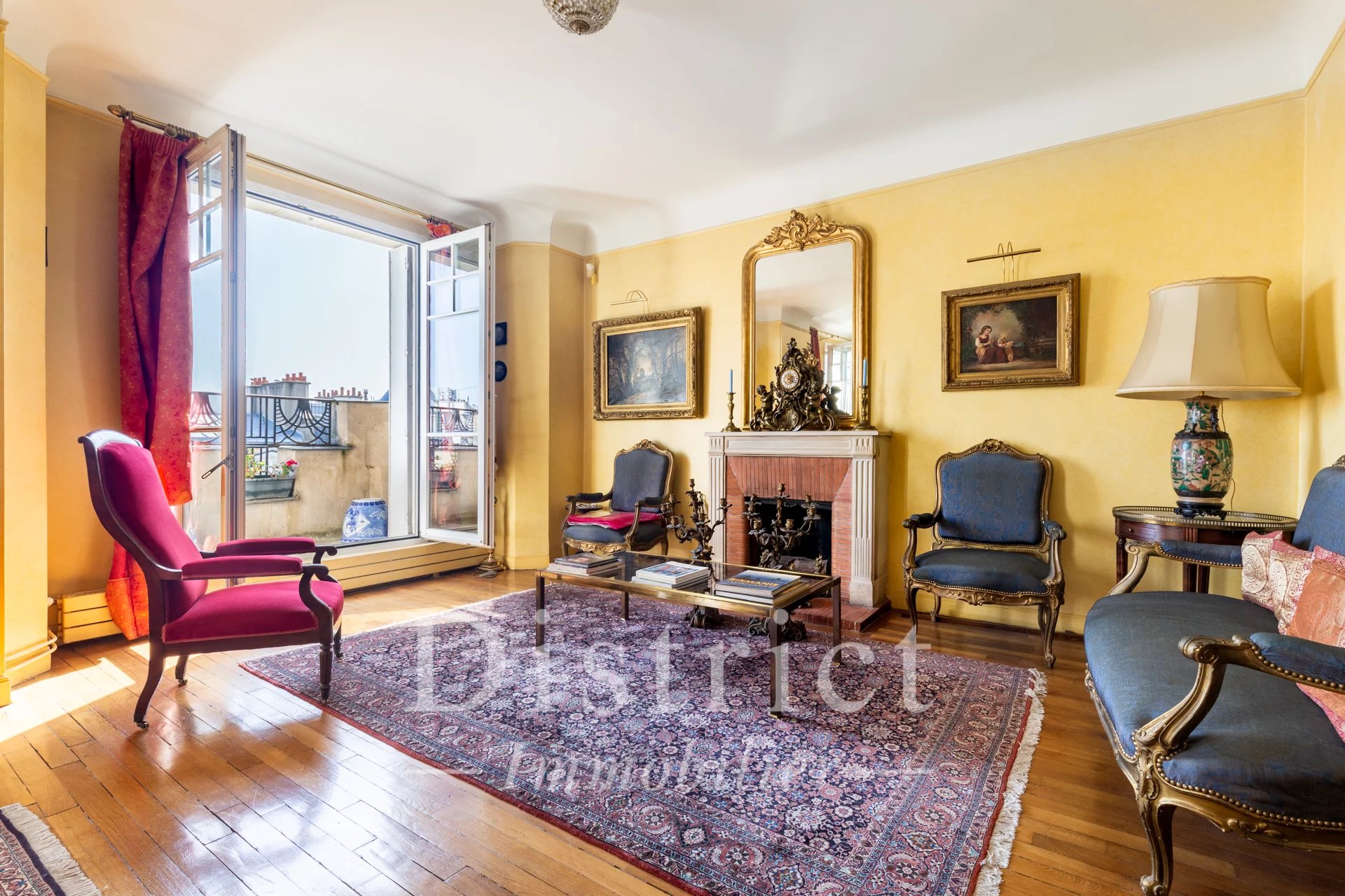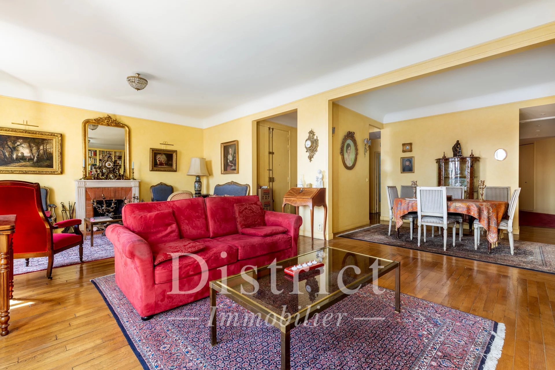 Exclusivité District Champ de Mars. Idéalement situé au pied du Champs de Mars, de l'École Militaire et à quelques pas de la rue Cler, cet appartement familial et de réception se situe au sixième étage avec ascenseur. Dans une élégante copropriété art déco daté (1927) et signée, il est parfaitement entretenu et gardienné. L'appartement offre une entrée, une vaste réception, des balcons, d'agréables vues notamment sur le dôme des invalides, un cachet ancien avec le parquet et 2,95 m de hauteur sous plafond. Son plan comporte une entrée, un spacieux triple séjours de 45 m² avec deux balcons, une cuisine aménagée, deux chambres au grand calme avec balconnets sur une belle cour à l'est, une salle de bains avec toilettes, une salle de douche, un dressing, de très nombreux placards et des toilettes invités. Au 7ème étage, une chambre de 9m² (ancienne chambre de service) avec un point d'eau et d'un placard à proximité. Une grande cave aménagée au sous-sol vient compléter cette offre rare dans le quartier. Un emplacement de parking à proximité peut être également vendu.