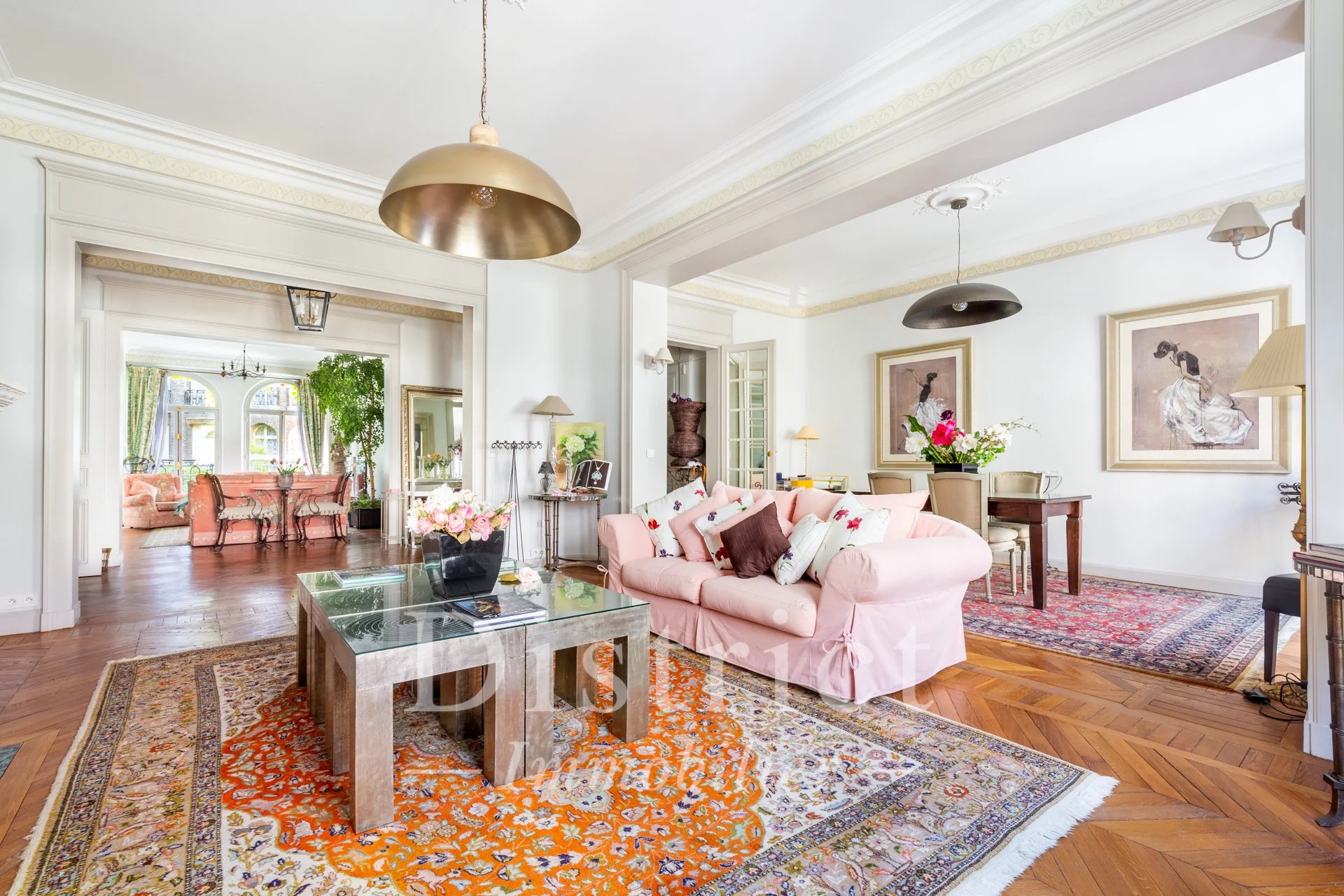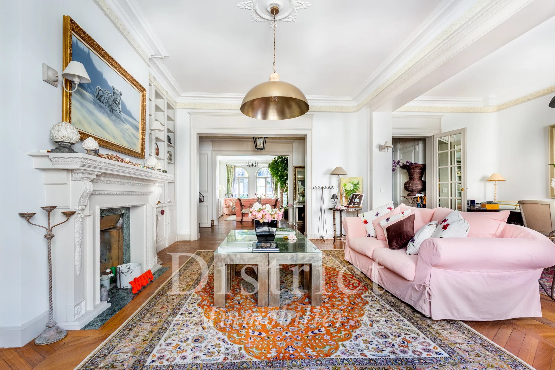 A proximité immédiate de la Place Victor Hugo et du Trocadéro, dans un secteur recherché proche des commerces et des transports, nous vous proposons ce magnifique appartement de 225m² (221,52m² Loi Carrez). A quelques pas de la Place de Victor Hugo, du Trocadéro, des commerces et des transports, au 2ème étage avec ascenseur et balcons d'un immeuble Art Déco de Grand standing sécurisé (Gardienne, Digicode, Interphone) aux élégantes parties communes. Cet appartement de 225m² au sol (221,51m² Loi Carrez) est en excellent état général et bénéficie d'une excellente circulation et de près de 3,35m de hauteur sous plafond! Il se compose d'une galerie d'entrée, un séjour, un salon tv, une salle à manger, une grande cuisine dinatoire, 4 chambres, un grand dressing, 2 salles de douche avec WC, un WC invités. Le salon, la salle à manger et 2 chambres donnent sur rue avec de grandes portes fenêtres avec balcons. Le salon TV, la cuisine dinatoire et les 2 autres chambres ouvrent sur une grande cour arborée et ensoleillée. Parquet, moulures et cheminées. Double cave. Gardienne Les volumes sont magnifiques pour cette adresse recherchés à visiter absolument.