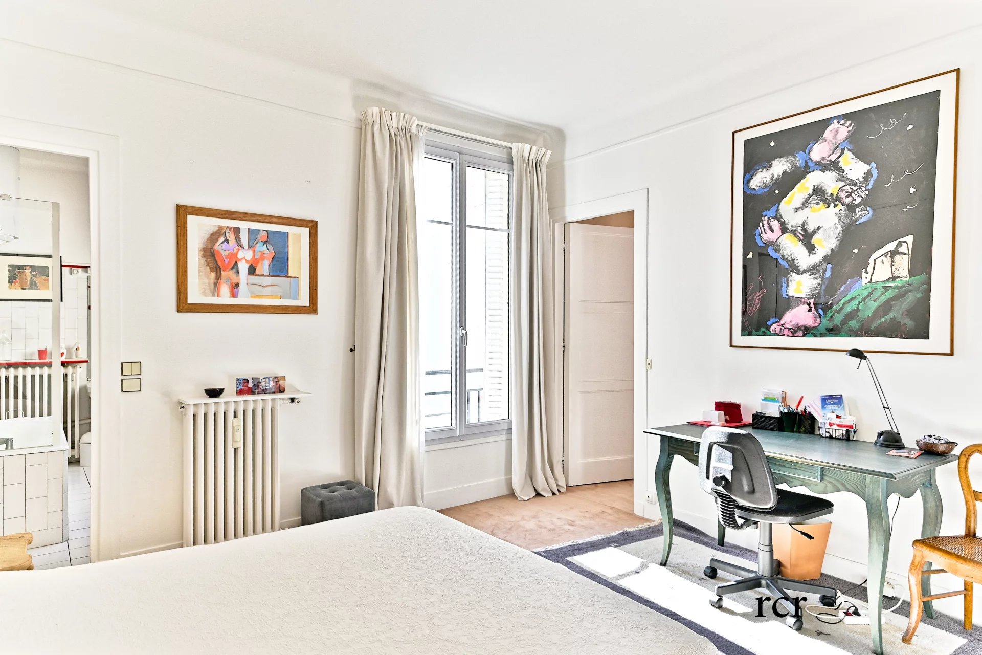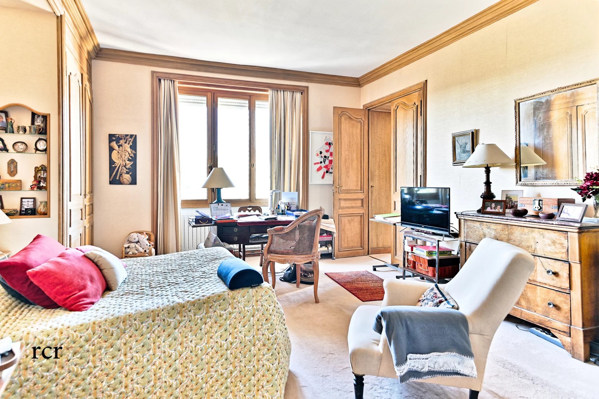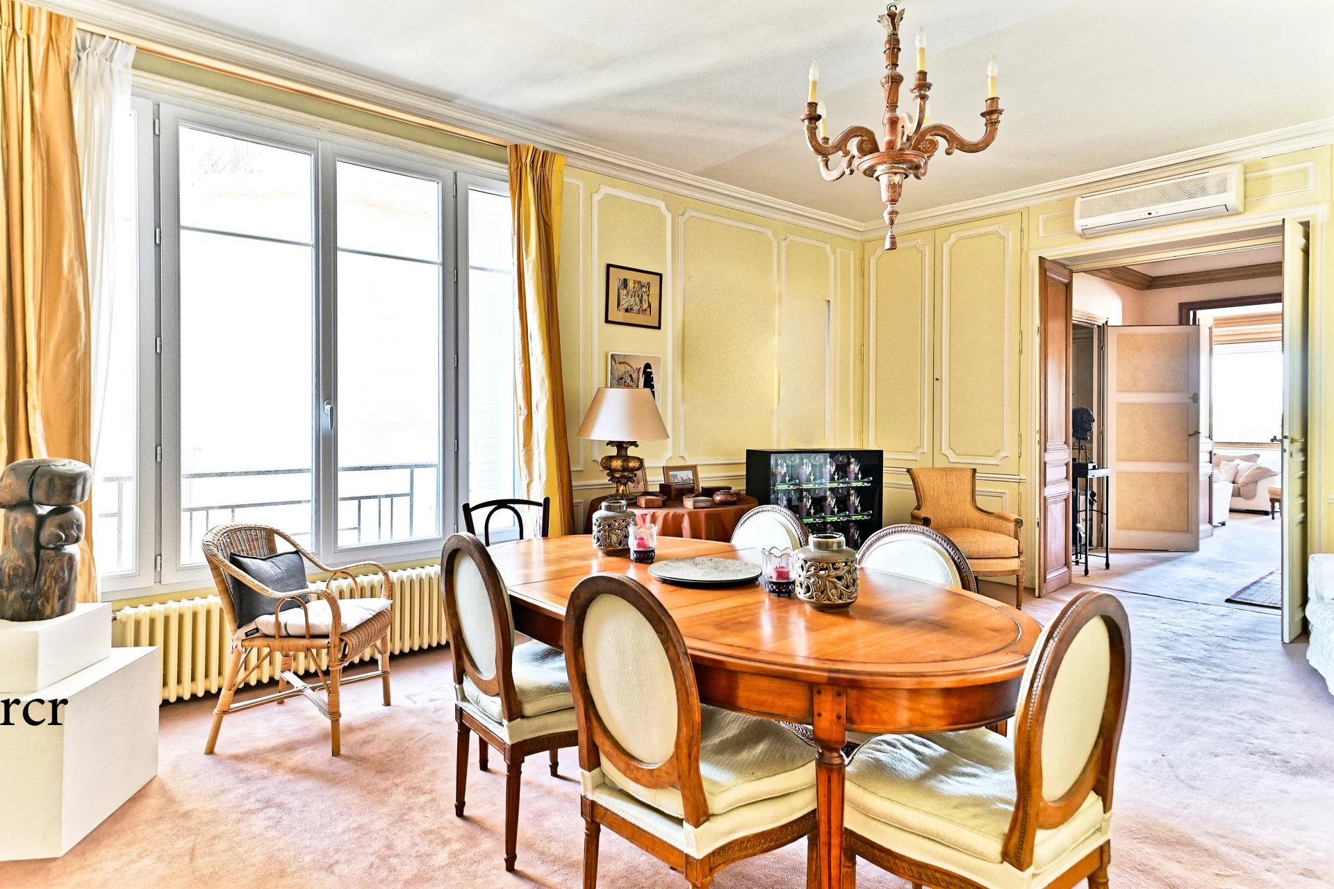 Neuilly sur Seine, Avenue de Madrid. Vue panoramique sur le Parc de Saint James et l'Ouest parisien. Appartement familial de 280m² ensoleillé au 5ème étage ascenseur d'un bel immeuble des années 30. Cet appartement de 8 pièces principales à la décoration élégante se compose d'une entrée, un double séjour avec cheminée, une salle à manger, une grande cuisine dinatoire, Une suite aprentale et 4 autres chambres avec penderies, 2 salles de bains, 2 salles de douche, 5 WC. Buanderie, lingerie, beaucoup de rangements. Un box en sous sol et une cave complètent ce bien rare!