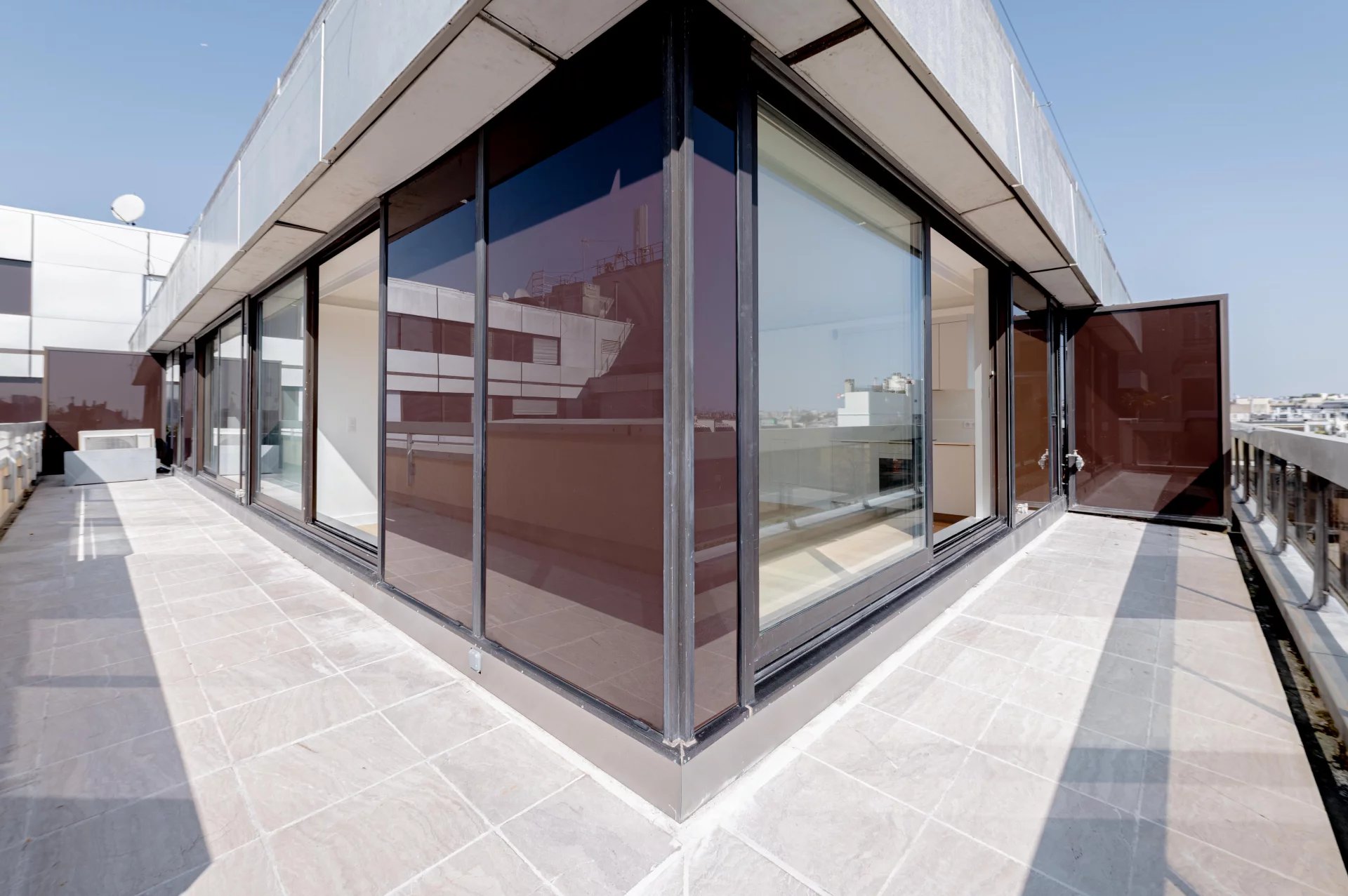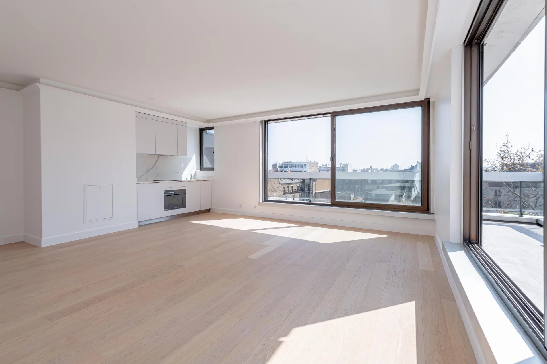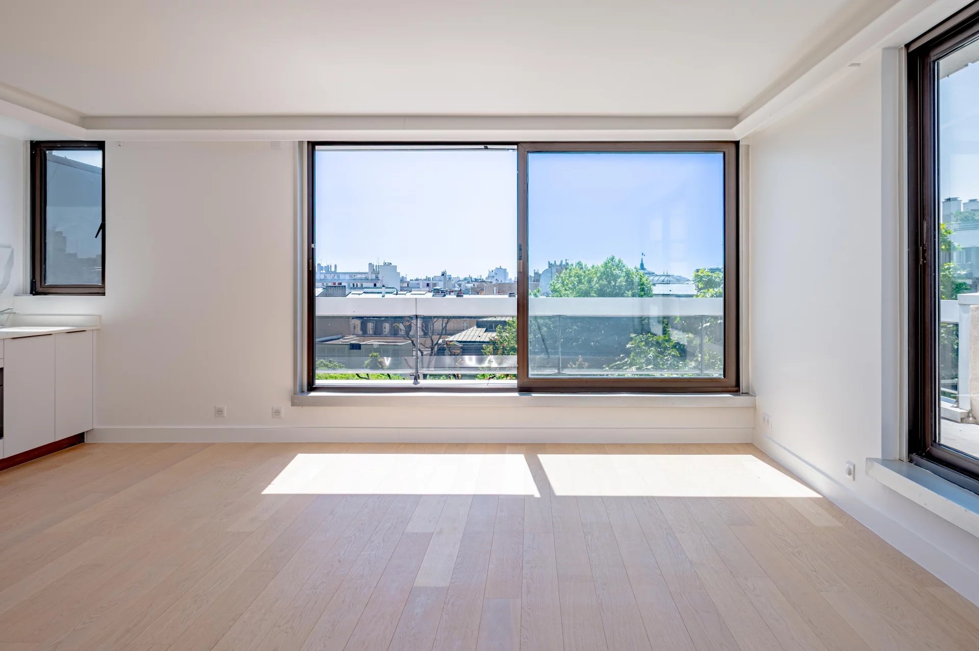 QUARTIER CHAMPS ELYSEES - AU CALME ABSOLU - DERNIER ETAGE - TERRASSE - VUE TOTALEMENT DEGAGEE A 180 DEGRE. CLIMATISATION REVERSIBLE Rare appartement penthouse REFAIT A NEUF situé au dernier étage d'un immeuble récent à deux pas de l'avenue des Champs Elysées. Rénové par un architecte de renom, cet appartement de 61m² Loi Carrez bénéficie d'une grande terrasse de plain pied de 29m²! Idéal pour un pied à terre de luxe. Bordé par une longue terrasse des 2 côtés et baigné de soleil, il comprend un beau séjour avec baies vitrés et une cuisine ouverte entièrement équipée et aménagée avec des équipements de qualité, une suite parentale comprenant son grand espace de dressing et sa salle de bains spacieuse. Les pièces de vie donnent un accès direct à la terrasse. Profitez de son confort grâce à la climatisation et des volets électriques, garantissant une atmosphère agréable tout au long de l'année. Il ne reste plus qu'à poser vos valises.