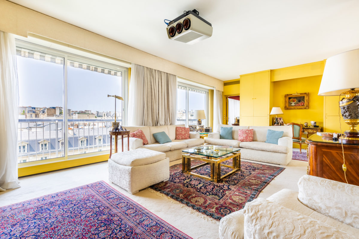 Ce magnifique penthouse de 230 m² à rénover entièrement occupe l’ensemble du dernier étage d’un immeuble de très grand standing de l’Avenue George V. Il bénéficie d’extérieurs : terrasses de plain-pied, véranda et balcons. Ses vues dégagées offrent une perspective panoramique avec d’un côté la tour Eiffel et l’église américaine, de l’autre les Invalides, Saint-Sulpice et le Sacré-Cœur.