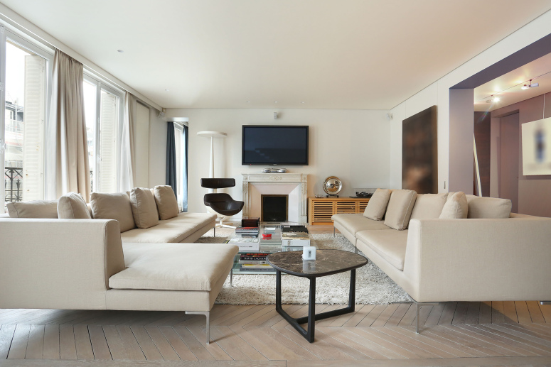 Ce superbe appartement au cœur du Triangle d’Or en incarne une version des plus aboutie, avec des lignes épurées à l’extrême, presque brutes, venant rehausser des éléments anciens parfaitement préservés. De la couleur judicieusement appliquée vient mettre en exergue le tour de force réussi d’un bien contemporain ancré dans l’intemporalité.