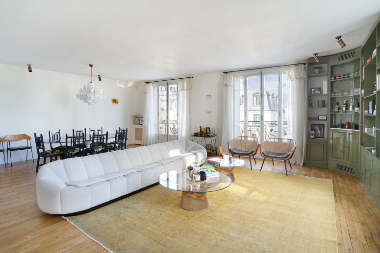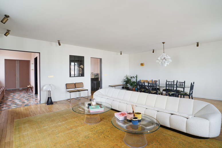 Niché au quatrième étage d’un immeuble des années 30, cet appartement familial de 141m2en excellent état a été soigneusement repensé par une décoratrice d’intérieur.