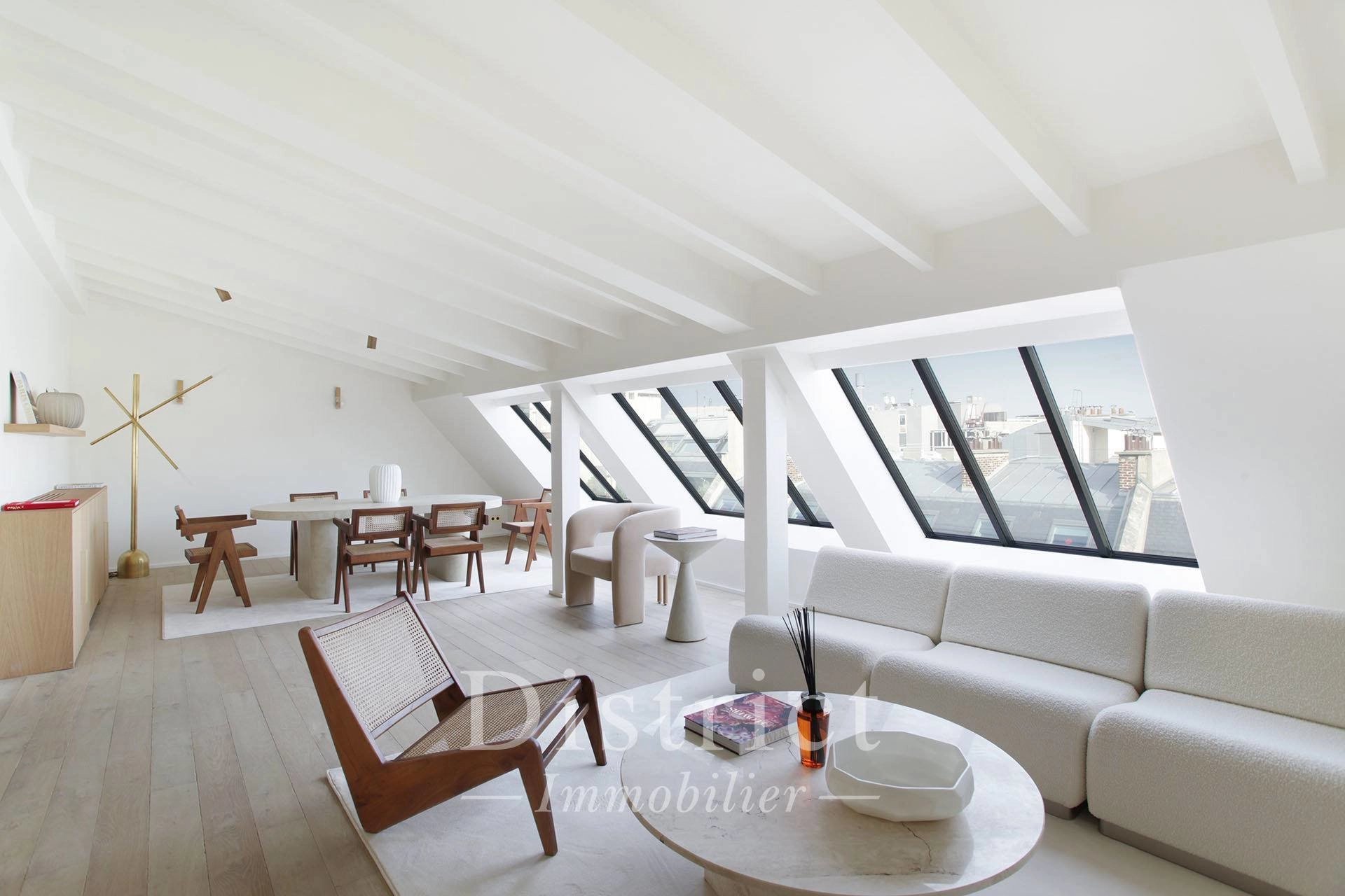 This entirely renovated duplex apartment is on the 6th and top floor of a fine Haussmannian building with beautiful common areas located just a stone’s throw from avenue George V. Decorated and furnished by an interior decorator, it offers 248 sqm of floor space and 235 sqm of living space as defined by the Carrez Law including a living/reception room and dining room with wide bay windows enjoying open views, a spacious fully equipped kitchen with dining facilities and a central island, a utility room, a complete master suite with a dressing room, a bath/shower room and a toilet, and four further suites enjoying views of the Eiffel Tower and Sacré Coeur Basilica. Air-conditioned throughout, and beautifully appointed. Cellar.