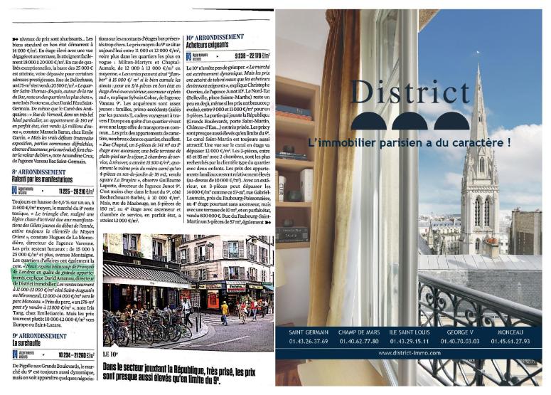 David Amanou, fondateur de District Immobilier et Directeur de l’Agence George V, a ainsi présenté son analyse du marché immobilier du 8ème arrondissement dans le cadre du dossier proposé par l’hebdomadaire consacré à l’immobilier parisien pour la rentrée.