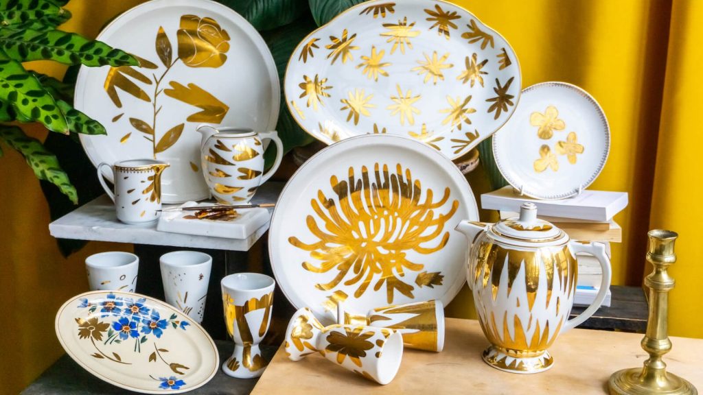 Un clin d’œil à son nom de famille, Arnold d’Alger, 33 ans, a fondé son « Bazar » au sein de son atelier/appartement parisien. Ancré dans une démarche responsable, cet ancien illustrateur chine de la vaisselle made in France et lui insuffle un nouvel air grâce à des décors réalisés au pinceau et à l’or. Pièces uniques et poétiques.