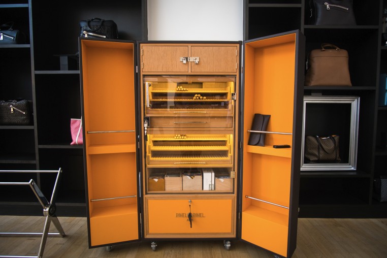 Son inventivité a transformé la malle de voyage en objet à vivre unique. Chacune, réalisée dans les règles de l’art, est dotée d’une fonctionnalité très originale : Home Cinéma, salon de musique, bar à cocktails, écrin à skis ou à montres de luxe… La malle à cigares, pouvant en abriter jusqu’à 1 400, est un best-seller.